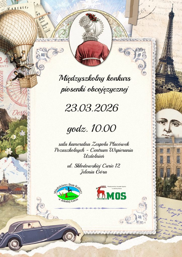Przypominamy, że w najbliższy poniedziałek (23 marca) w sali kameralnej MKD przy ul. Skłodowskiej-Curie 12 w Jeleniej Górze odbędzie się Konkurs Piosenki Obcojęzycznej. W załącznikach znajdą Państwo również regulamin i kartę zgłoszeń.